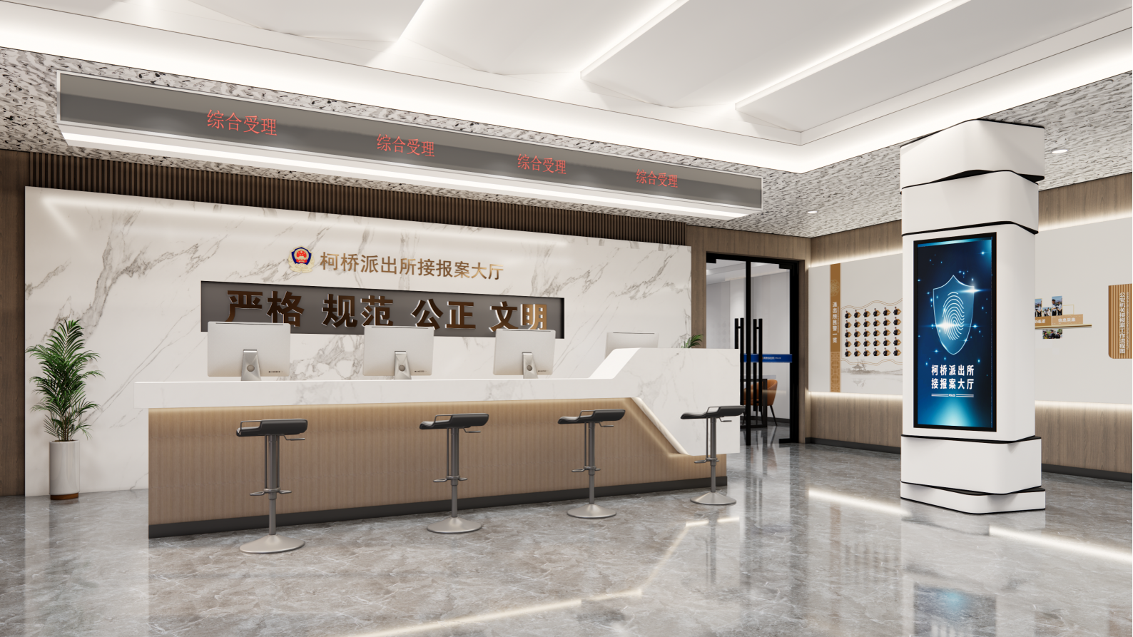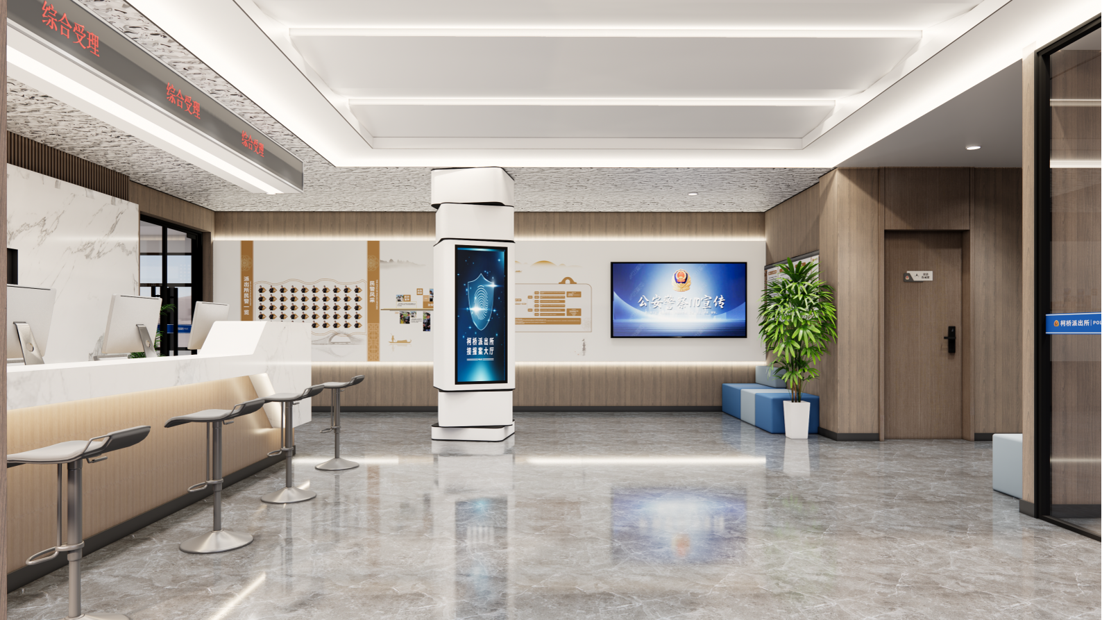 柯桥派出所作为绍兴市公安局柯桥区分局的核心基层单位,肩负着维护辖区稳定、服务人民群众、促进民族团结的重要使命。为进一步深化警务文化建设,全面提升服务效能与品牌形象,柯桥派出所启动12个空间的全方位布展升级工作。本项目以“党建引领、科技赋能、为民服务、文化铸魂”为核心定位,通过文化墙创意设计、空间氛围沉浸式营造、功能标识系统优化等多元呈现形式,将警务核心职能、历史传承脉络、民族团结理念、科技警务应用等关键元素融入空间布局,既打造了规范高效的警务工作环境,又构建了温馨贴心的群众互动空间,更塑造了独具辨识度的警营文化IP,让派出所成为守护辖区平安、凝聚群众民心、彰显责任担当的“看得见的安全感”示范阵地。