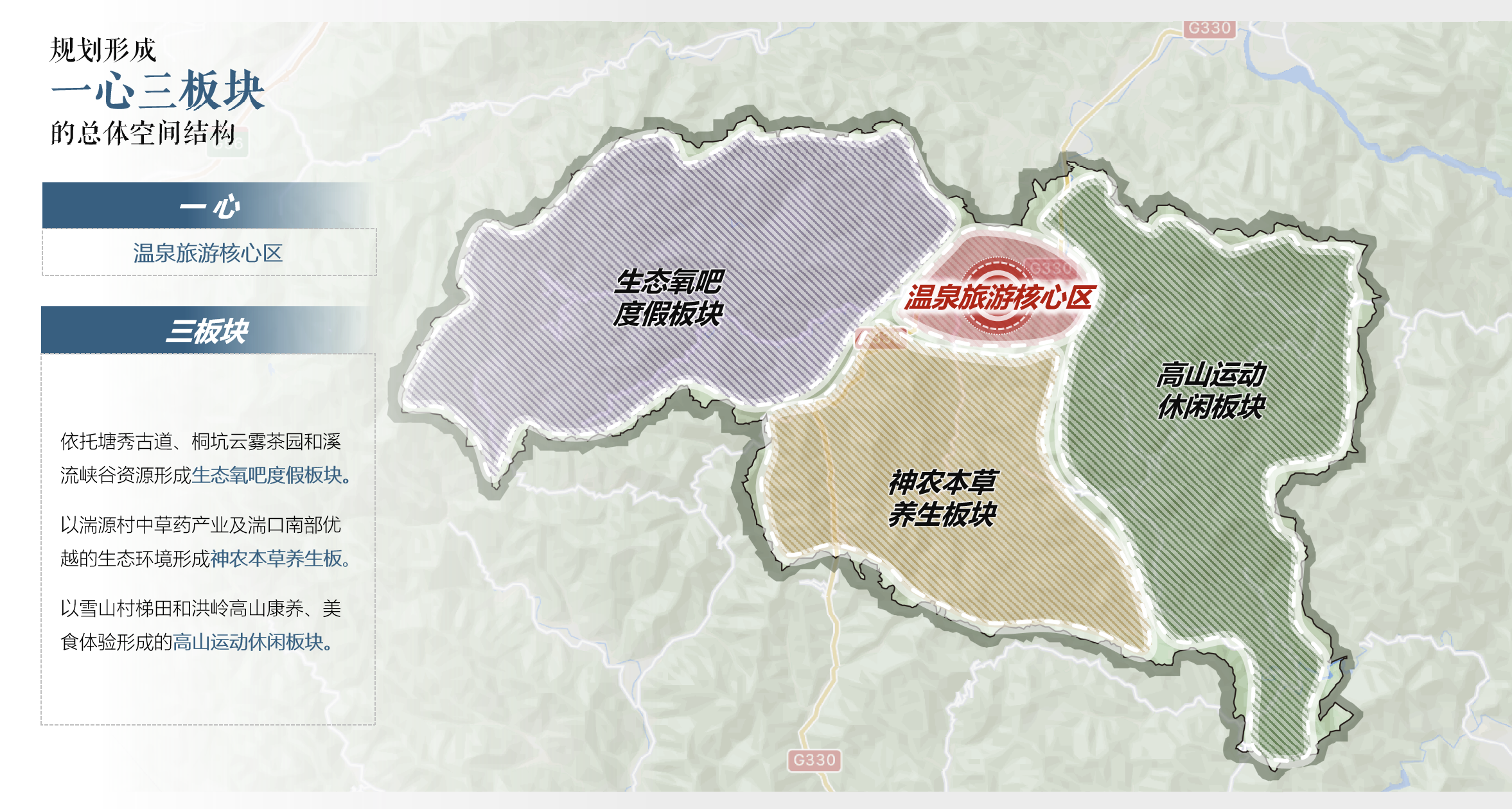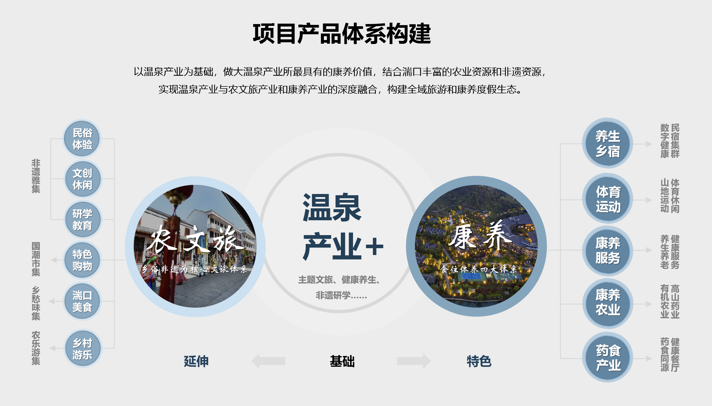 布局康养产业集群,强化健康服务赋能效应。项目围绕高端养生需求,重点规划建设数字康养驿站、云诊疗中心、智慧健康餐厅等现代化健康服务设施,同时联动区域内高山药园与有机农场资源,创新构建 “药膳调理+温泉养生+运动康养”三位一体的康养服务链条。该链条精准对接杭州、上海等核心城市的高端客群养生需求,以专业化、智慧化的健康服务为支撑,打造差异化康养度假标签。