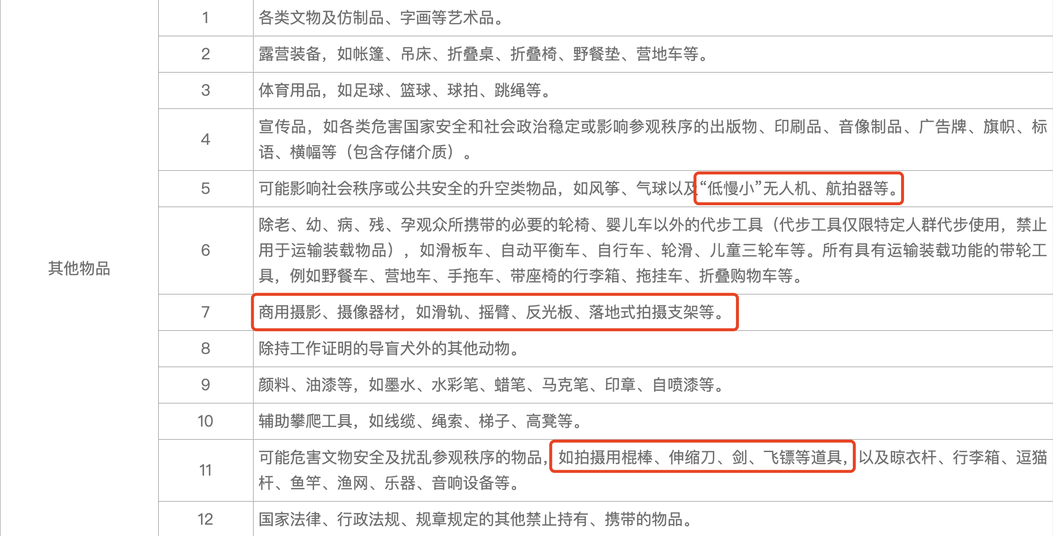 ◎《故宫博物院禁止携带物品目录》图源/故宫博物院官网