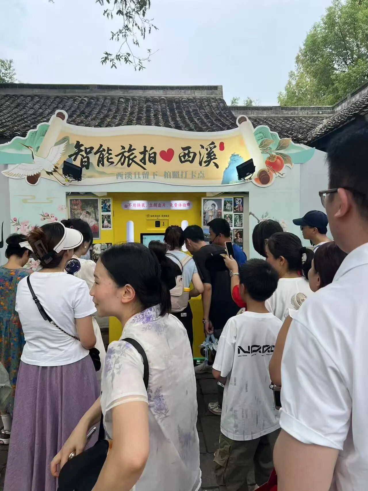 ◎国庆期间,游客在无界魔镜西溪湿地现场拍照打卡。图源/无界AI