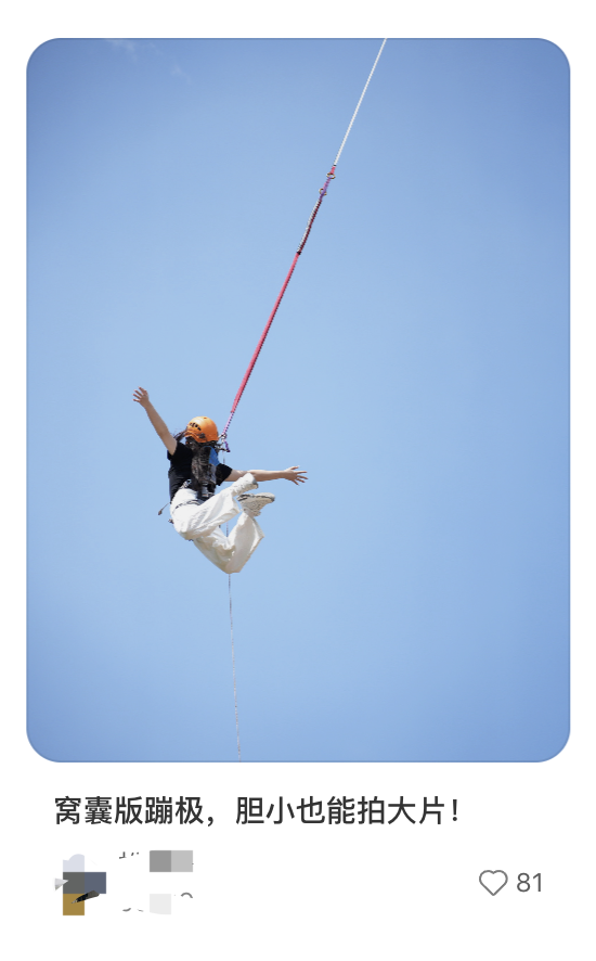 以浙江安吉云上草原景区为例,其早在2021年就推出“窝囊蹦极”,但起初反响平淡。随着景区加强短视频运营,并结合话题挑战引导用户分享,逐步形成“体验—分享—引流”的传播闭环。据悉,目前该景区蹦极项目的游客量已实现数倍增长,展现出内容营销与情绪共鸣对文旅消费的强劲拉动。
