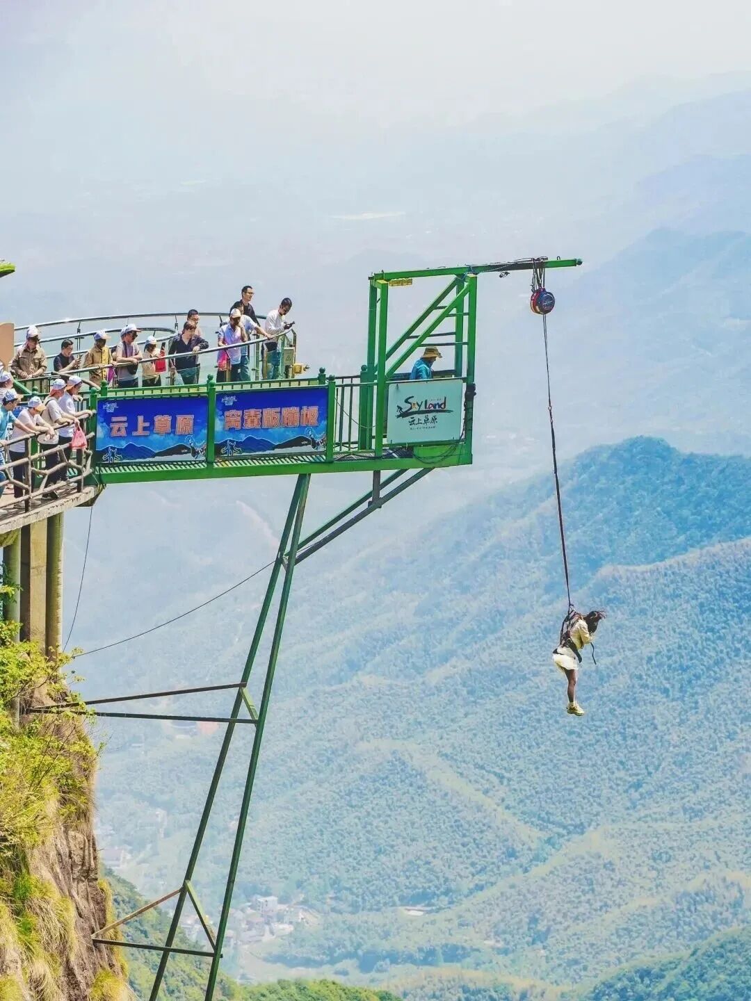 ◎浙江安吉云上草原缓缓下落的窝囊蹦极,被网友戏称“好窝囊但好喜欢”。(信息及图片来源:浙江文旅政务)