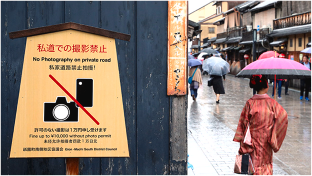◎2019年,日本京都祇园地区实施禁止游客拍照的规定,未获允许在禁止拍照的私有道路拍照将被罚款。2025年年初,日本多家旅游局也加强宣传一系列新禁令,以减轻旅游热潮带来的混乱与困扰。(信息及图片来源:日本媒体NHK)