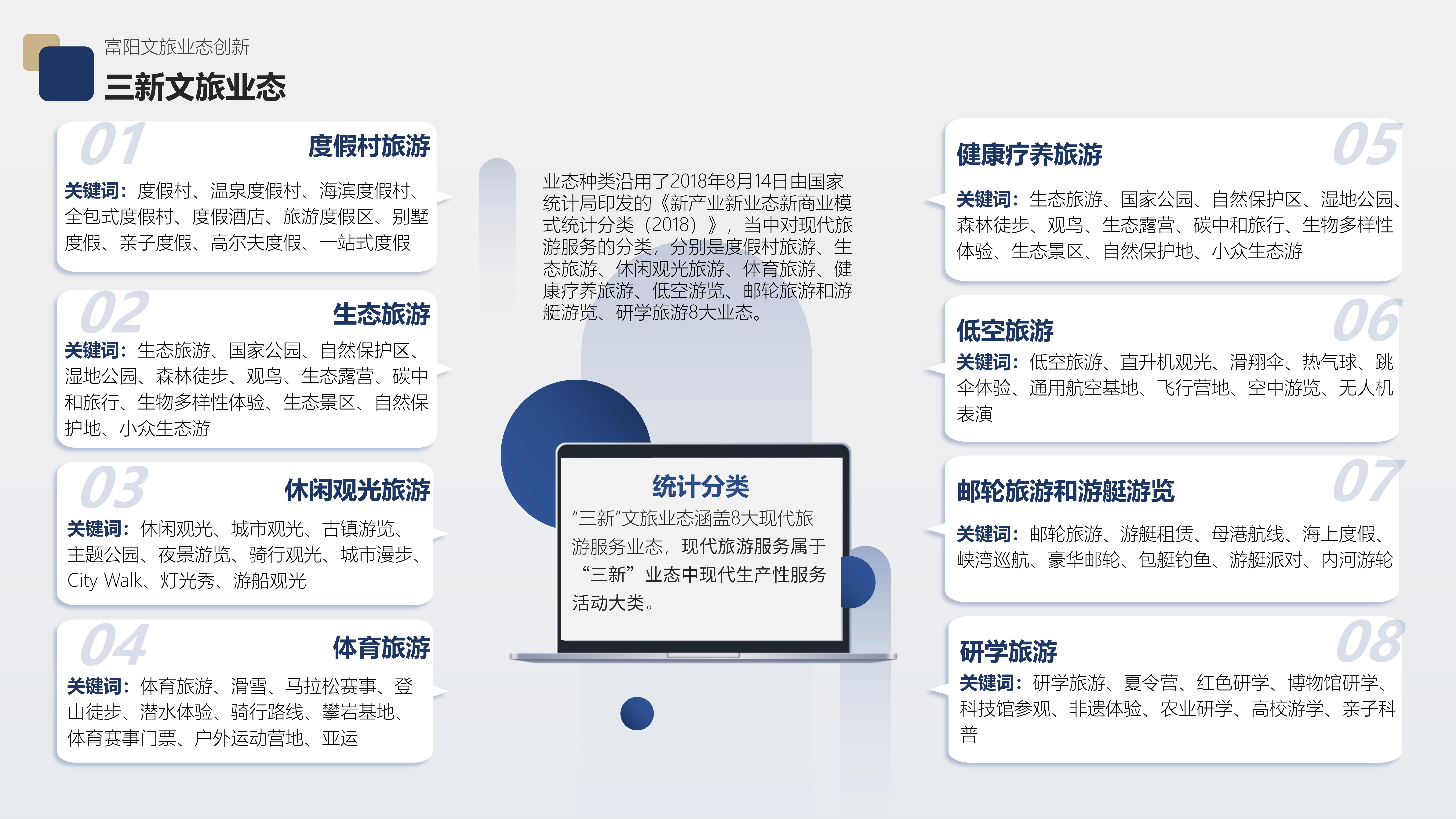 业态发展前瞻务实。研究聚焦三新业态,围绕富阳休闲观光、度假村、健康疗养、体育旅游、低空旅游五大高关联度业态,提出以多业态融合、数字化转型与品牌IP化为核心的未来发展策略,路径清晰且操作性强。